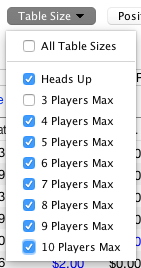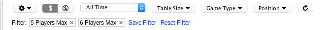 Most filters let you select any number of options. Here you can see that I’ve set the filter to show all hands played on 5-max or 6-max tables. This is no limit to how many options you can select in most filters.