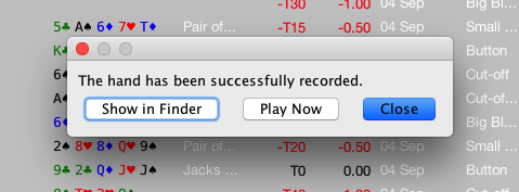 - In the table, select the hands you want to record. Hold down the shift key while selecting hands so that you can select multiple hands. Or press Cmd+A (Ctrl+A on Windows) to select ALL the hands in the table.